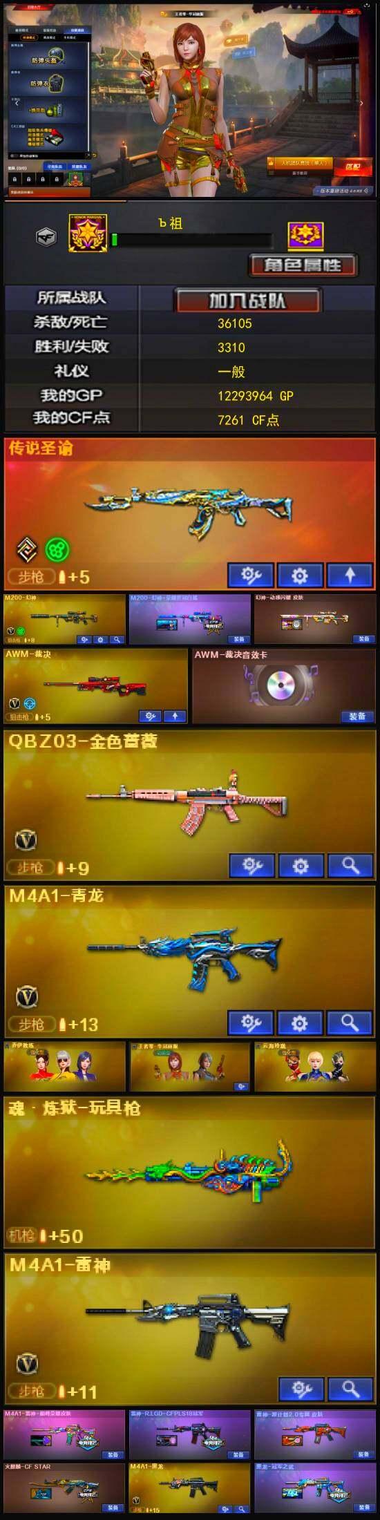 可排位 ,可二次实名 ,M200-幻神 ,QBZ03-金色蔷薇 ,M4A1-雷神